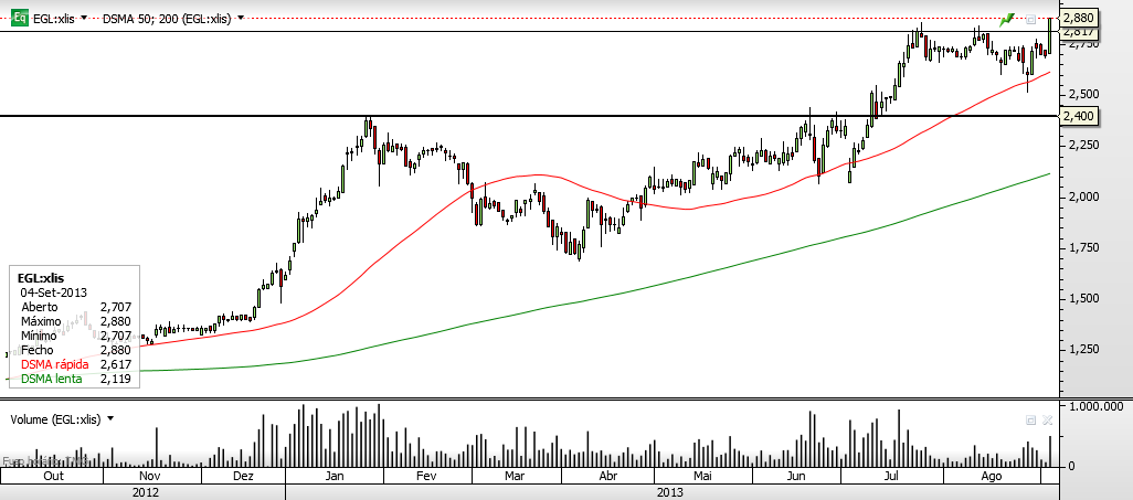 A quebra em alta dos 3,00 levará a um reforço de posição.