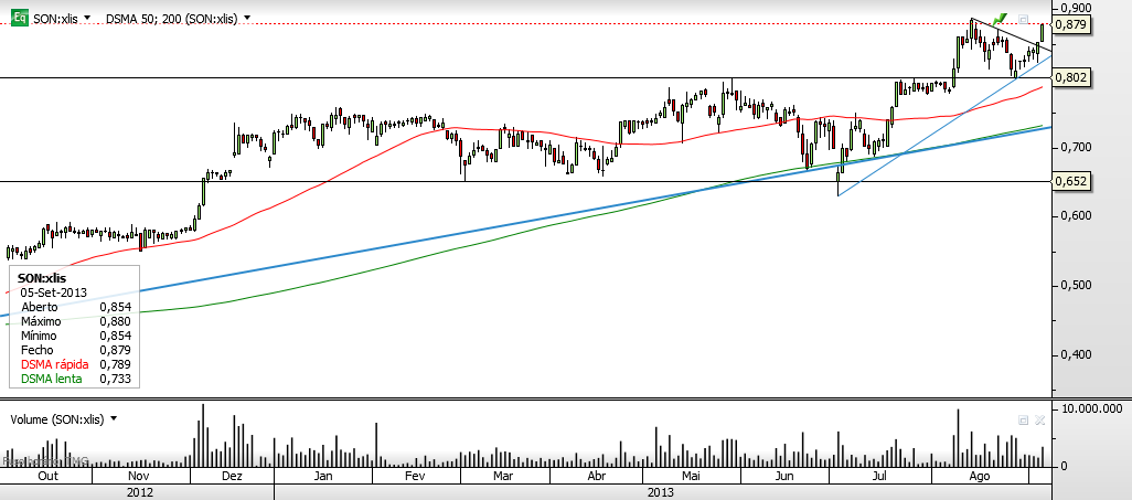 O que vejo ao olhar para os gráficos é uma tendência de longo, médio prazo claramente ascendente, o movimento de curto prazo de hoje no mesmo sentido e com bastante volume foram o gatilho para esta entrada.