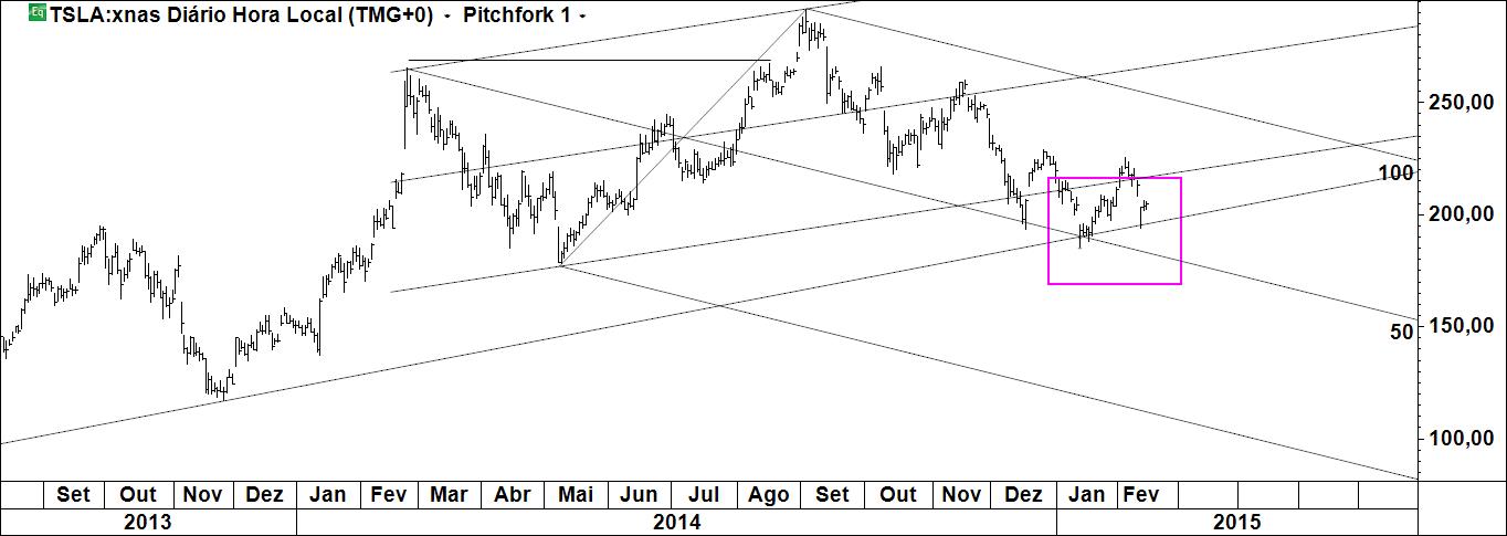 A tesla, que integra a carteira originária (com a amat), logrou voltar para perto do local onde se havia colocado a ordem compradora (ver post de 21/1).