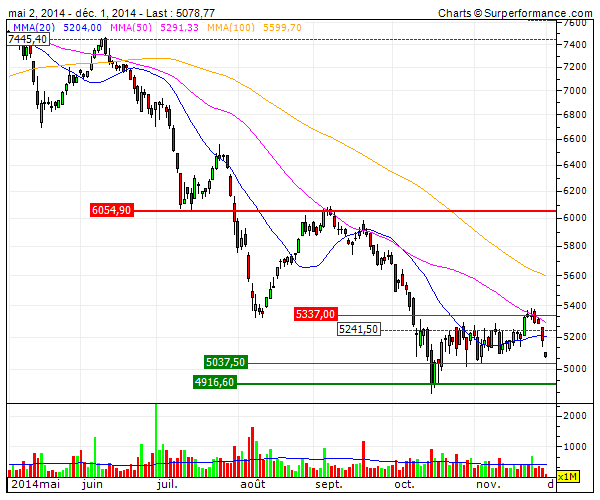 Hoje o PSI quebrou mais um suporte e aproxima-se da lifeline da memória dos preços - 5050/4950. Contudo, dado o timing desta correção (próximo do Natal) e o status do crude oil (queda benéfica para os mercados Europeus), espero poder afirmar que se trata de uma Bear Trap. Conjugação de quedas para que os players reduzam carteiras e aumentem a liquidez conjuntural. Porque julgo ser uma oportunidade, considero reforçar na superação dos 5200 pontos (preparo esse momento com o aumento de liquidez via take profit de 1/2 da posição em Jerónimo Martins. Lufthansa vou reduzir para metade na aproximação aos 15€).