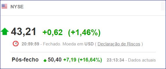 A pré-abertura de hoje põe a Empresa a valer 17 Bio. É muita fruta. Se chegar hoje aos 50$, duplicou de valor em 2 semanas.....