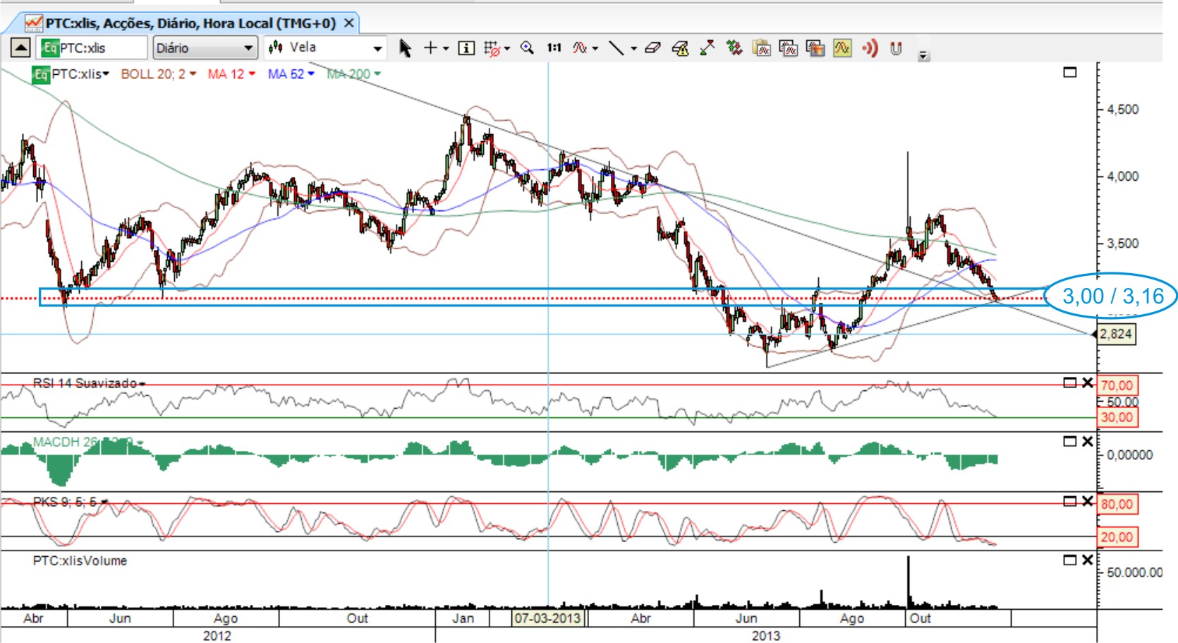 Já agora e por enquanto, eu diria que tanto as OI´s como a PT estão em bons suportes, se não forem rompidos podem arrancar de mãos dadas.