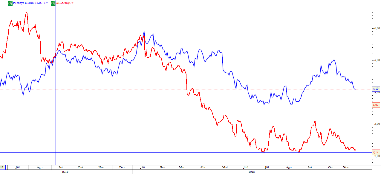 Fica aqui um gráfico comparativo Oi / PT.