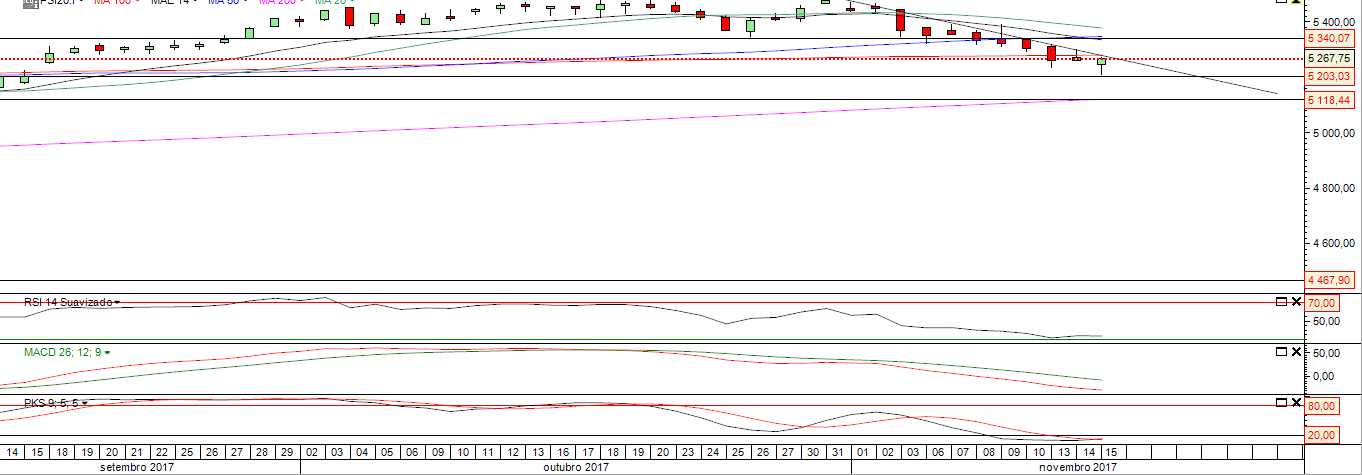 Não estamos muito longe dos 5200 (apenas 1,11%) e sinceramente, ou amanhã o mercado reage positivamente aos resultados do BCP (que estão em linha com as estimativas), ou ainda vamos parar aos 5000.