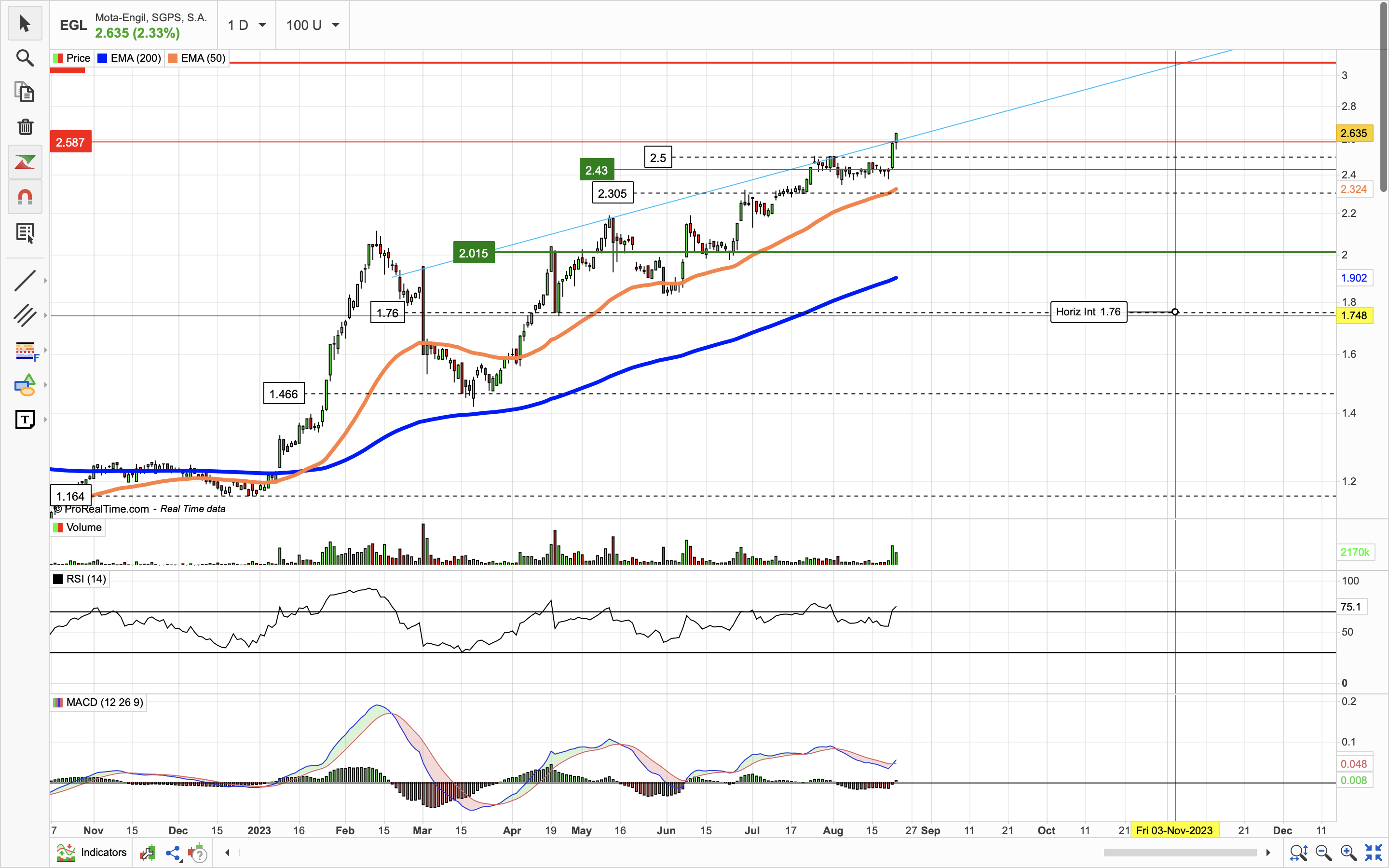 Aqui fica o gráfico nao esta actualizo à data de hoje mas o rsi a aproximar de zonas onde se vende mais por isso falo 2.70 ,