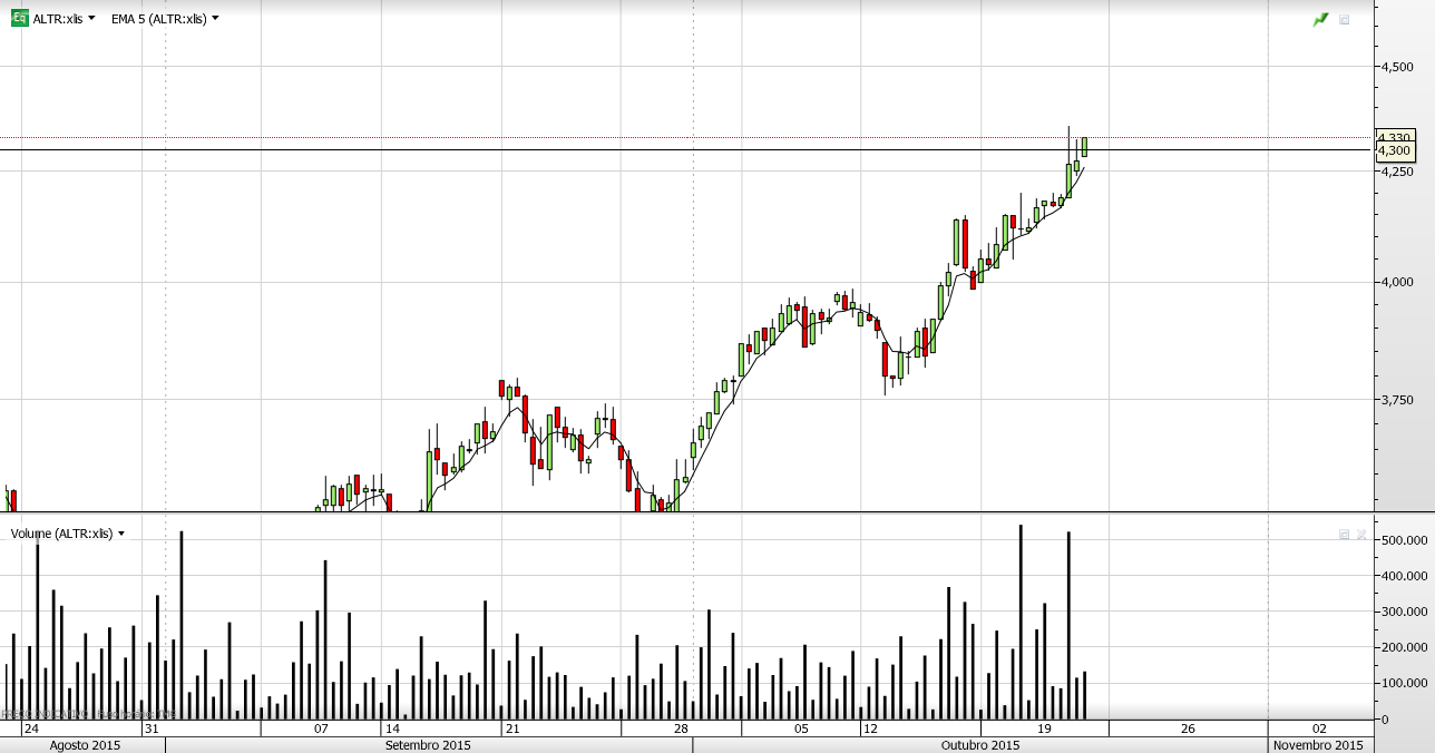 O padrão de velas na Altri é bastante feio