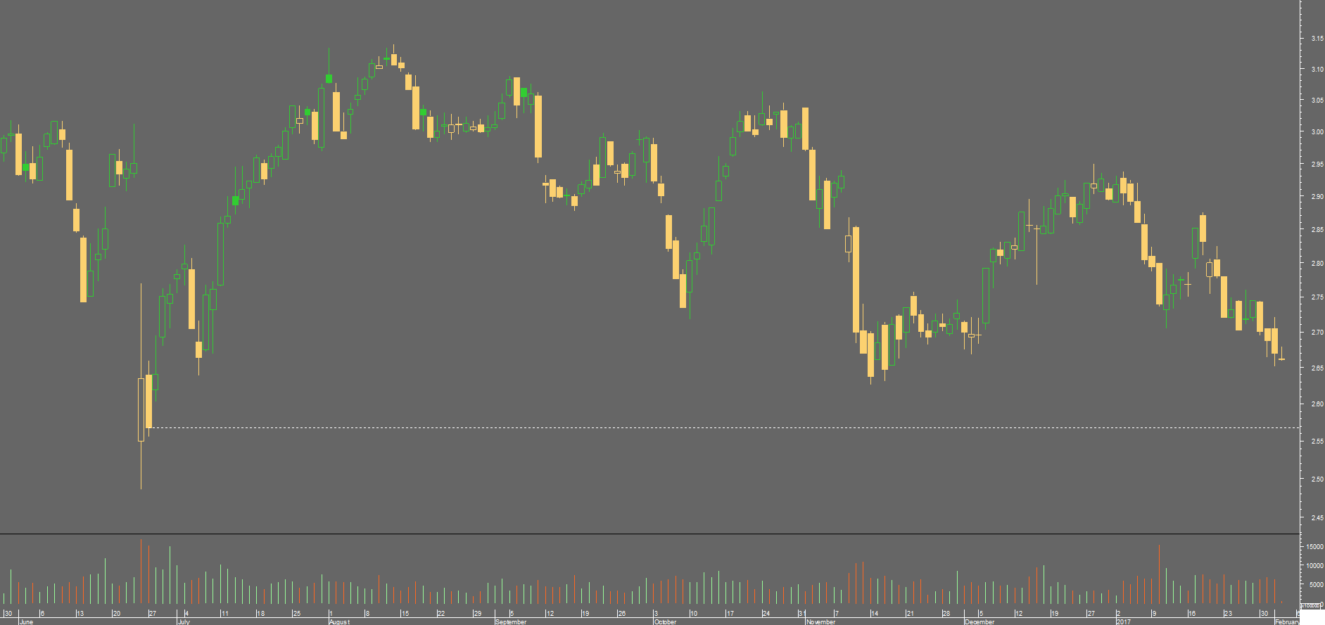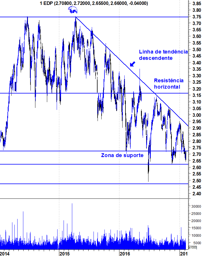 no caso da edp não encontro suporte aí, mas sim mais abaixo, pelos 2.568, já que desde então ela faz sucessivos fundos mais altos, ainda que marginalmente