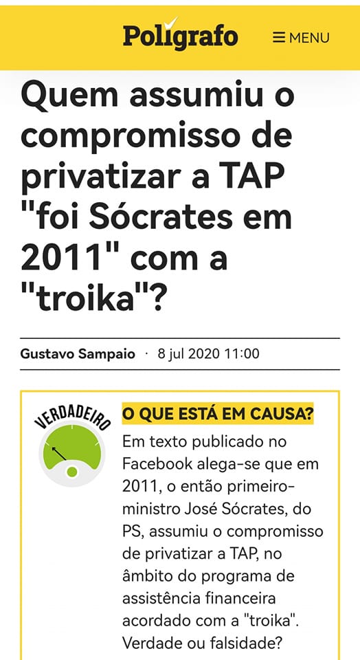 Já esta semana, foi a vez do chefe Costa, num tweet da conta oficial do Partido Socialista, dizer a propósito da TAP que "Depois de o PSD ter oferecido a TAP ao desbarato à 26ª hora, o Governo do Partido Socialista foi obrigado a salvar a companhia aérea, reconhecendo o seu papel central para a coesão territorial e para a internacionalização da nossa economia."