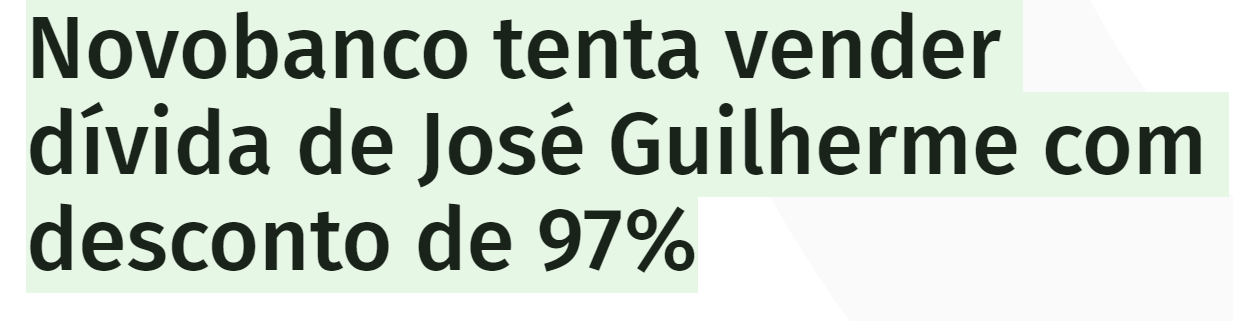 NirSup Escreveu:novobanco tenta vender dívida de José Guilherme com desconto de 97%