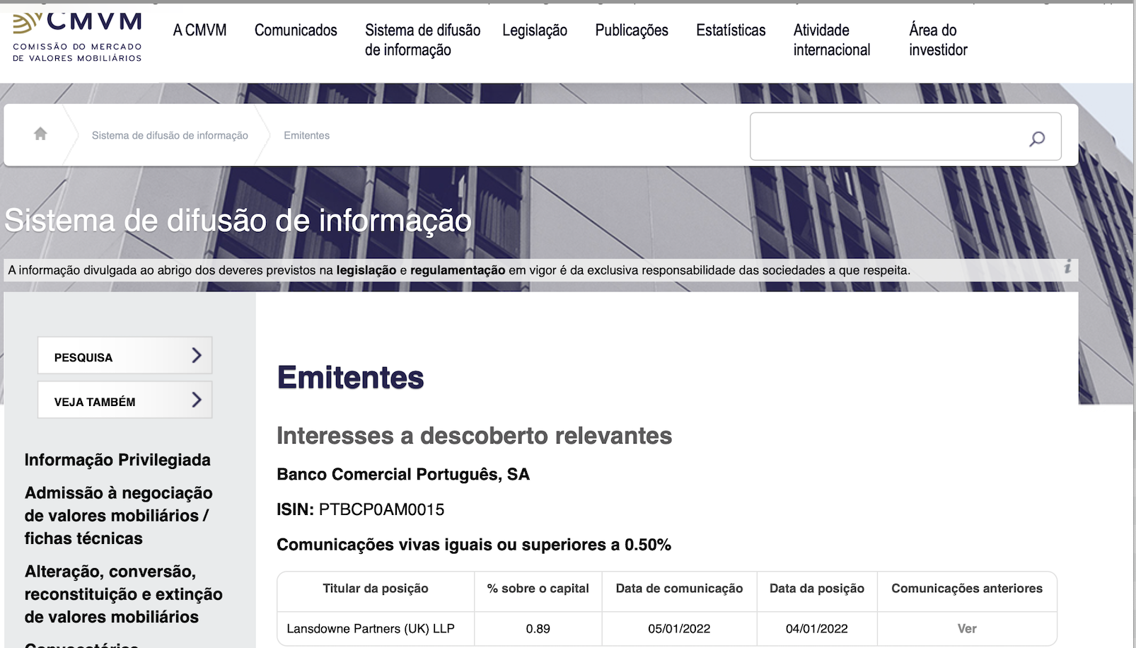 aquilo que a Lansdowne Partners (UK) LLP informa é que reduziu a posição a 05.01.2022 que estava nos 0,98, para 0,89, ou seja....