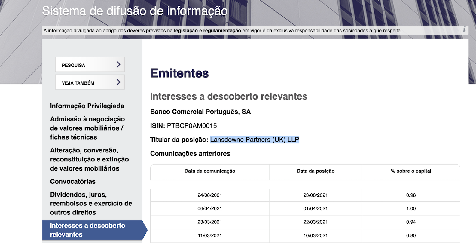 Lansdowne Partners ( UK ) LLP - que tem posição de quase 1% a descoberto no BCP .