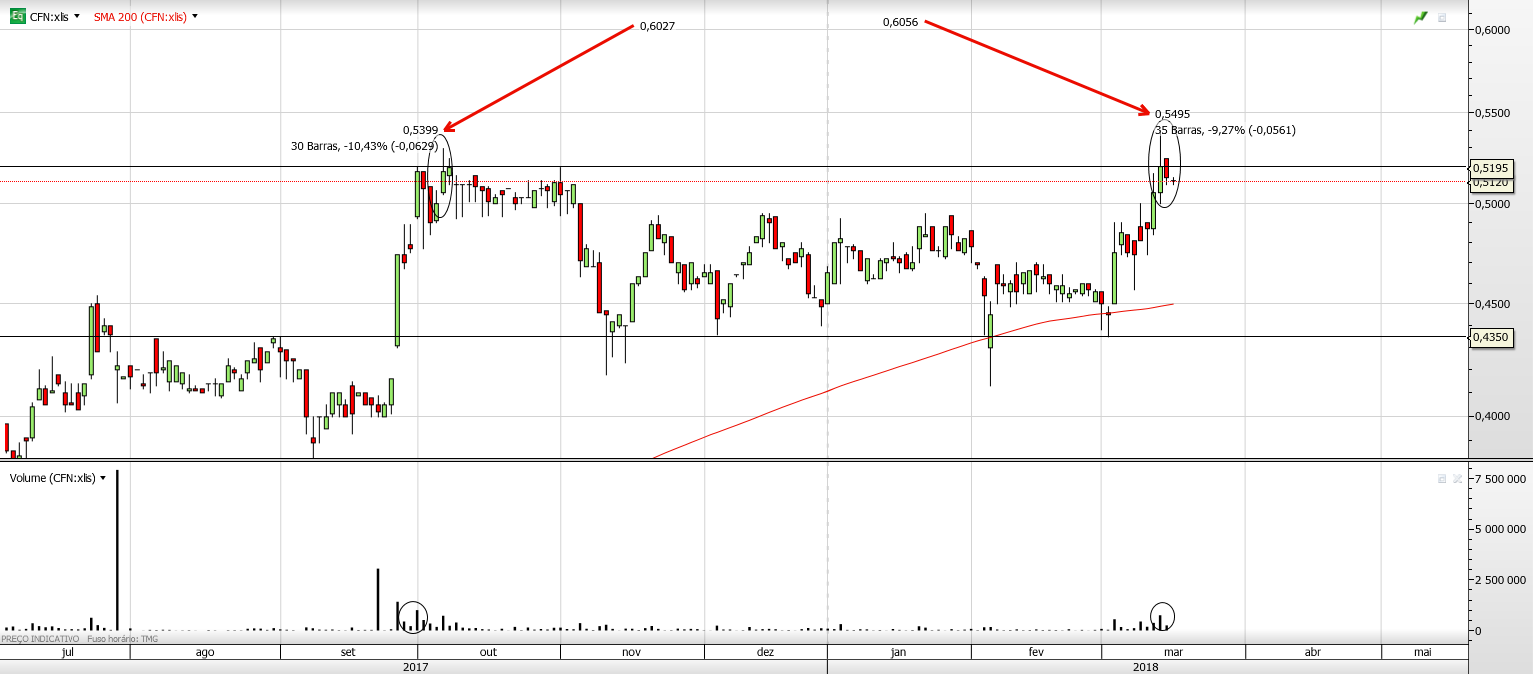 A CFN tem transacionado no range 0.43-0.50 , sendo um bom intervalo de trade .