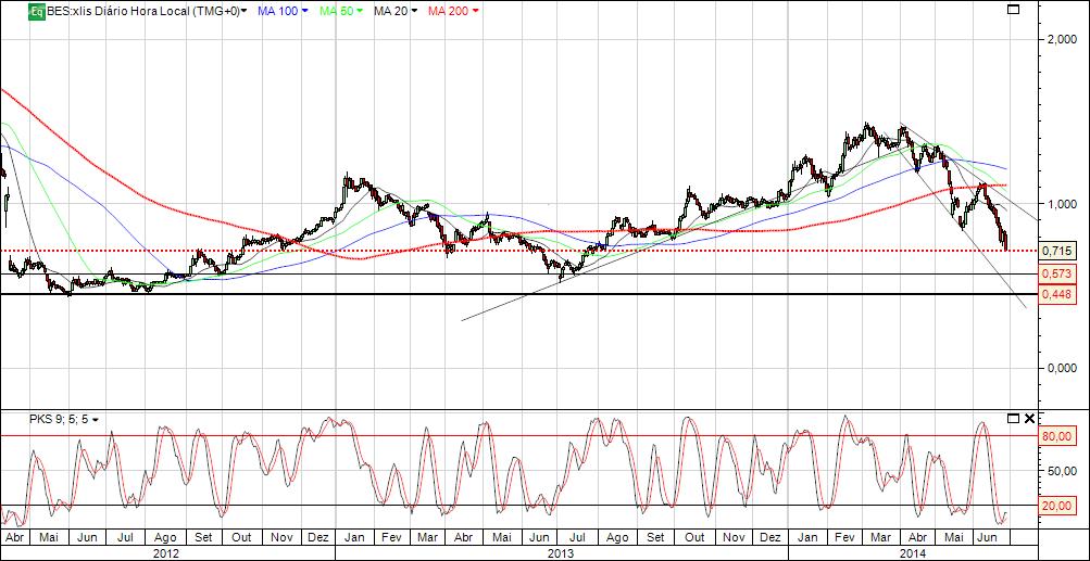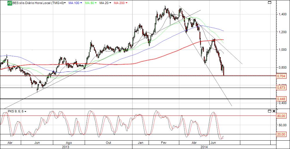 bom então pensa o que te fez abrir posição, ainda te deves lembrar e decide a partir dai, podes sempre consultar as últimas velas no diário, semanal e mensal talvez te ajude a ver o rumo do BES no curto prazo.Quem está ligado:
