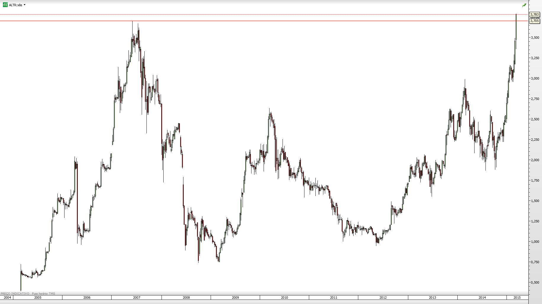 o gráfico está devidamente ajustado a stock splits, etc