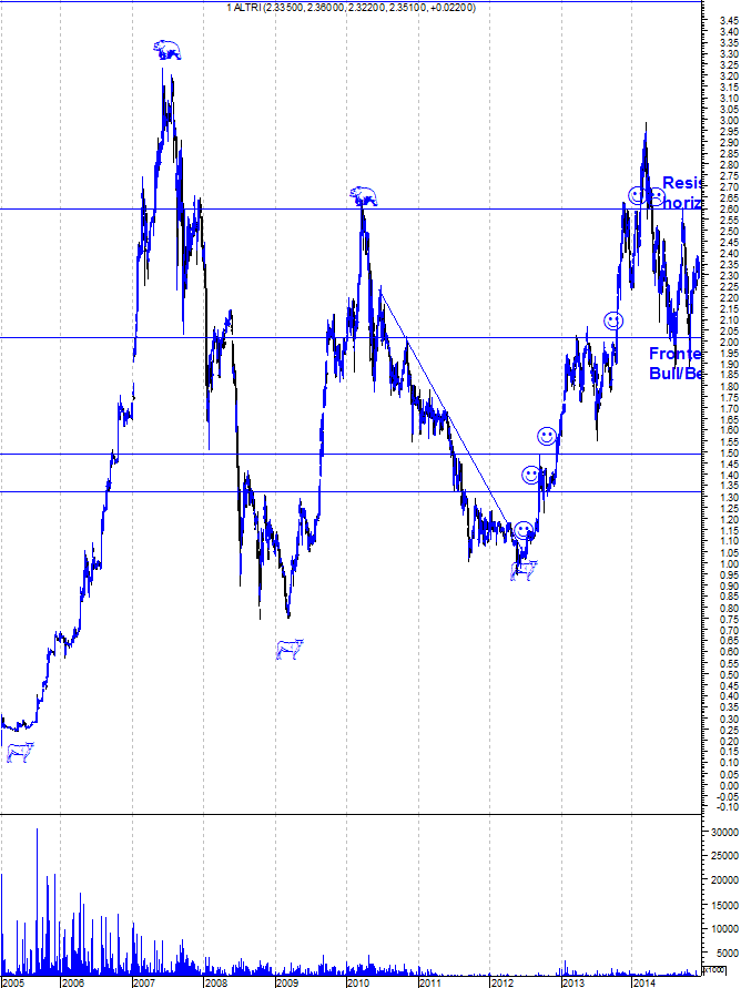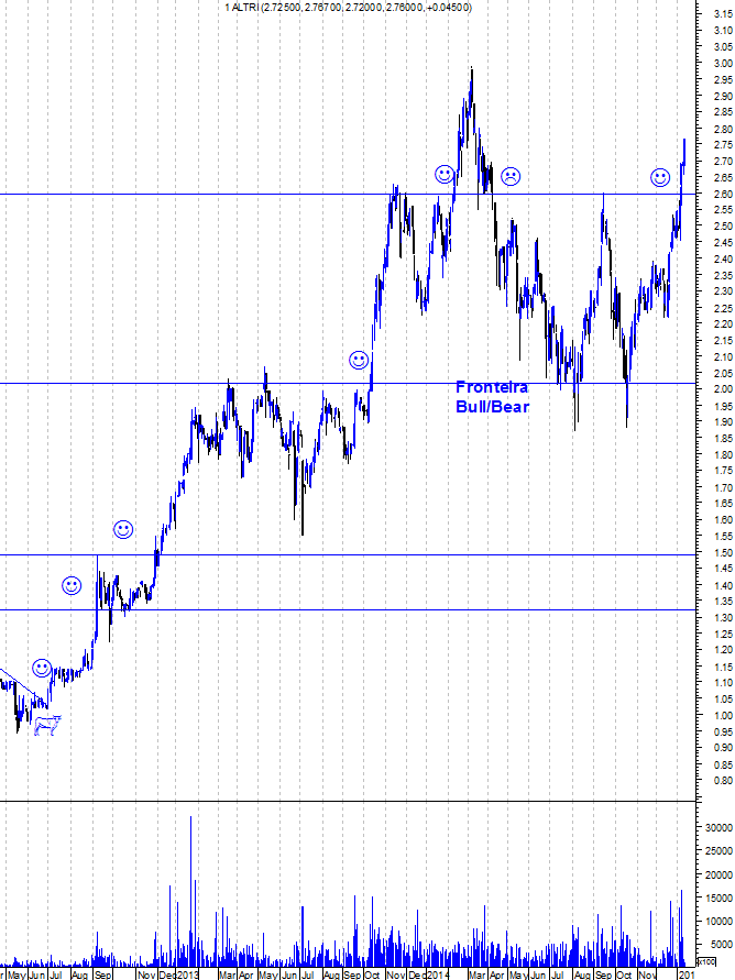 Apramg Escreveu:A altri está perto da forte resistência dos 2,60-2,62. Como em bear market devemos estar atentos às resistências e não aos suportes (...).