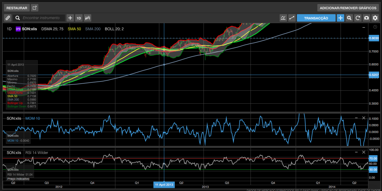 O suporte dos € 0,80 foi uma resistência complicada de transpor entre 2012, e 2013, logo, para ser quebrado deverá ser testado com magnitude, queres então dizer que, este movimento da Sonae dos últimos 2/3 dias tem alguma relevância, só se for para ti