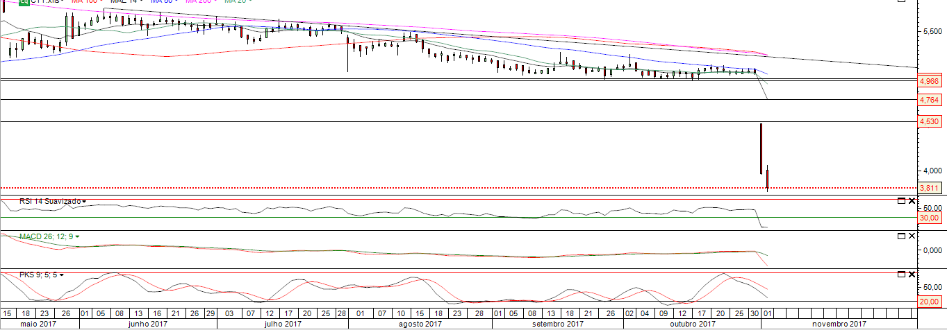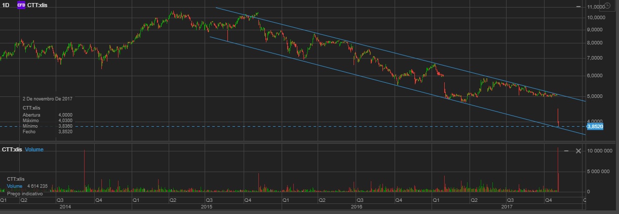 Os CTT não conseguem sequer levantar a cabeça. A força vendedora continua vigorosa e o volume continua muito acima da média. Como diria o outro: Trata-se de uma faca de dois "legumes".