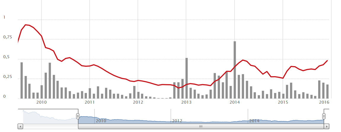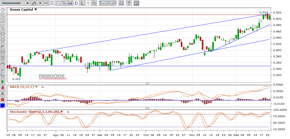 Já vi a sonc ir contra a maré, nos dias em que o psi20 desceu 4%(moção rejeição), 2%, etc. Talvez tenha sido essa força que fez com que a sonc subisse aos máximos de Abril 2014. Já foi uma subida consideravelmente boa (0.45-0.51 13%).