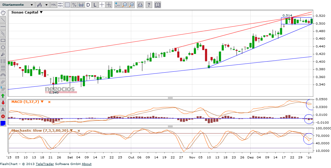 Eu mantenho a minha opinião em relação à sonc. Perdeu força após a escalada dos 0.44 aos 0.51. Voltarei a entrar longo, caso esta consolidação se mantenha na casa dos 0.50, e comece a mostrar sinais de mais força para uma escalada aos 0.60 até à apresentação dos resultados. Apesar de ter fechado, mantenho o meu optimismo!