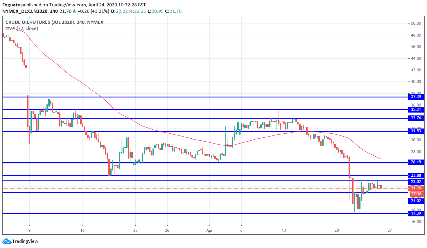 Observação O evento de o contrato futuro cotar a negativos já acontecia nas equações das taxas de juros negativas, rendimentos negativos e strikes negativos sobre opções exóticas com assets negativos. Apenas nunca tinha acontecido sobre futuros WTI front month.
