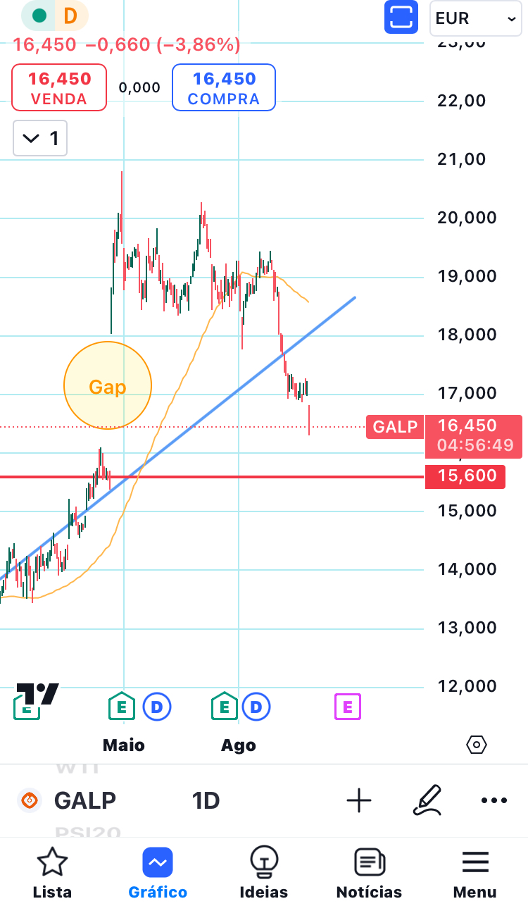 Ainda não fechou o gap grande e não sei se vai fechar. Para fechar teria de ir a 15,6