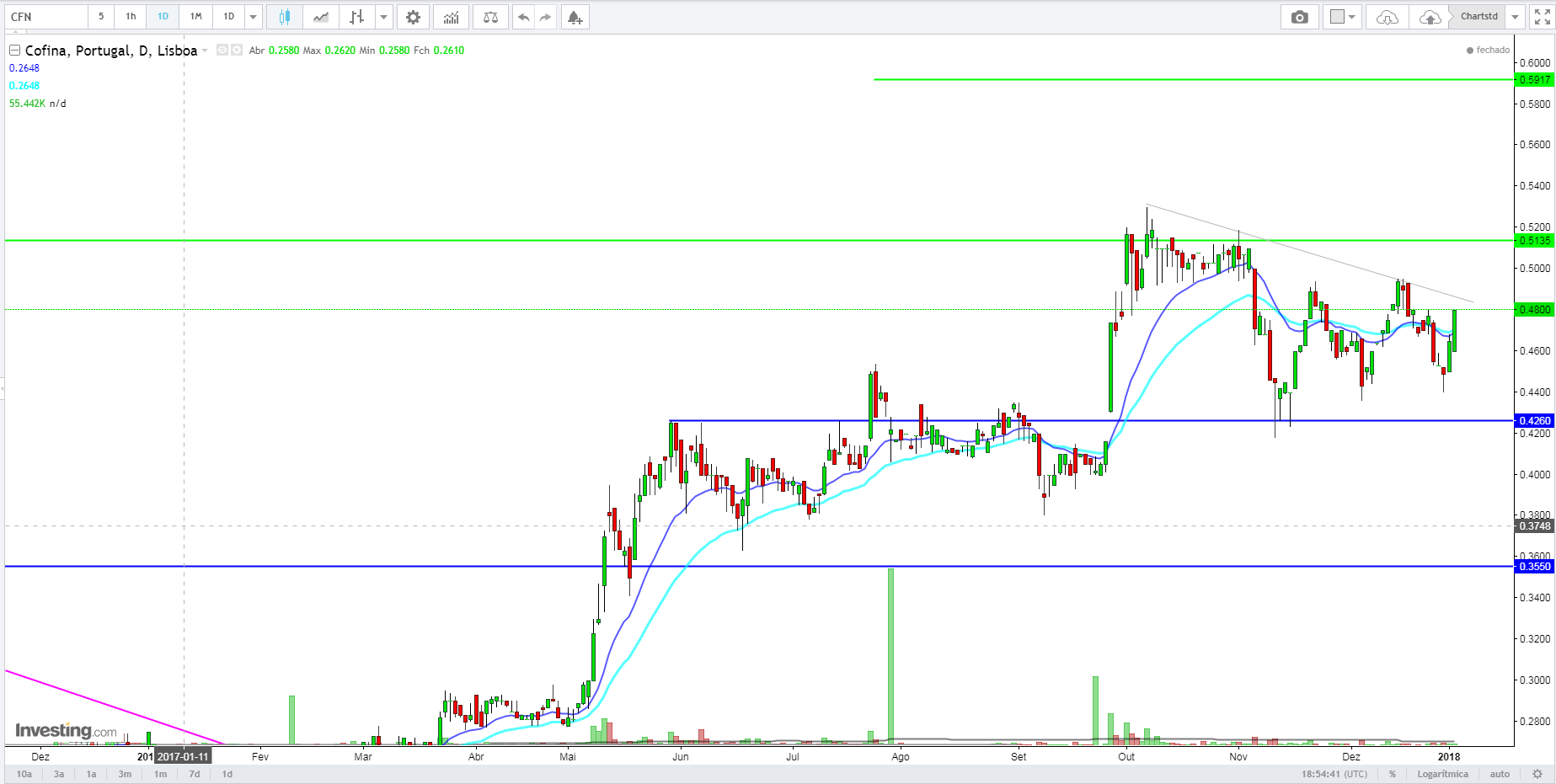 Em relação ao gráfico continua imaculado, e a cheirar a resistencia dos 0.50/0.53.