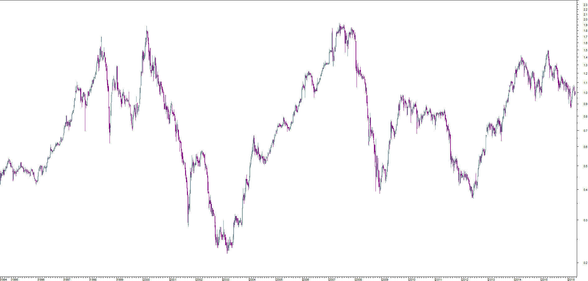 Peço-te alguma paciência para me dizeres o que se passa neste meu gráfico: escala linear, após dividendos e o máximo que tenho em 2007 é +/- de 1.55 eur, que nada tem a ver com o teu gráfico, diz-me tb que querem dizer estes preços no gráfico de c.prazo: (0.99500, 1.00700, 0.99500, 1.00500, +0.00400).