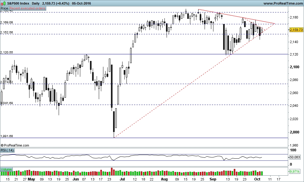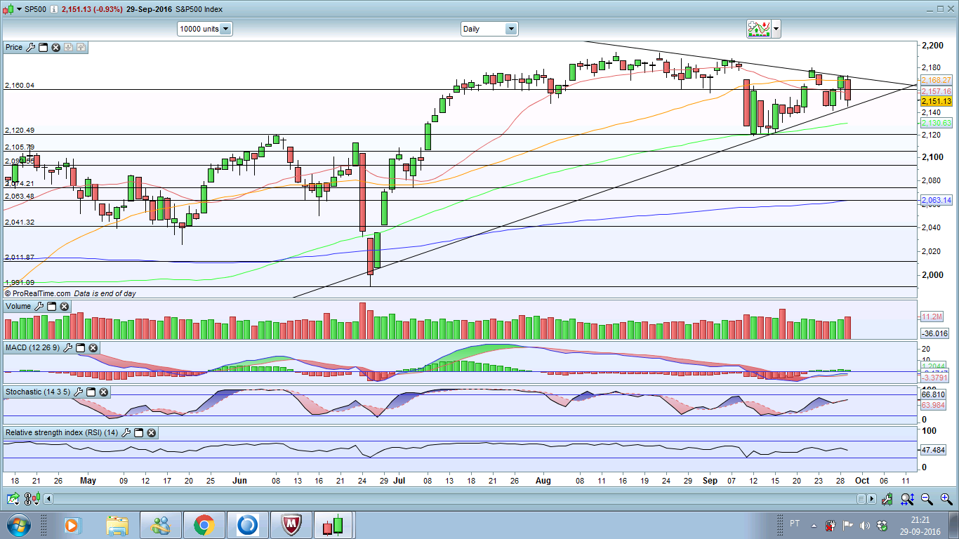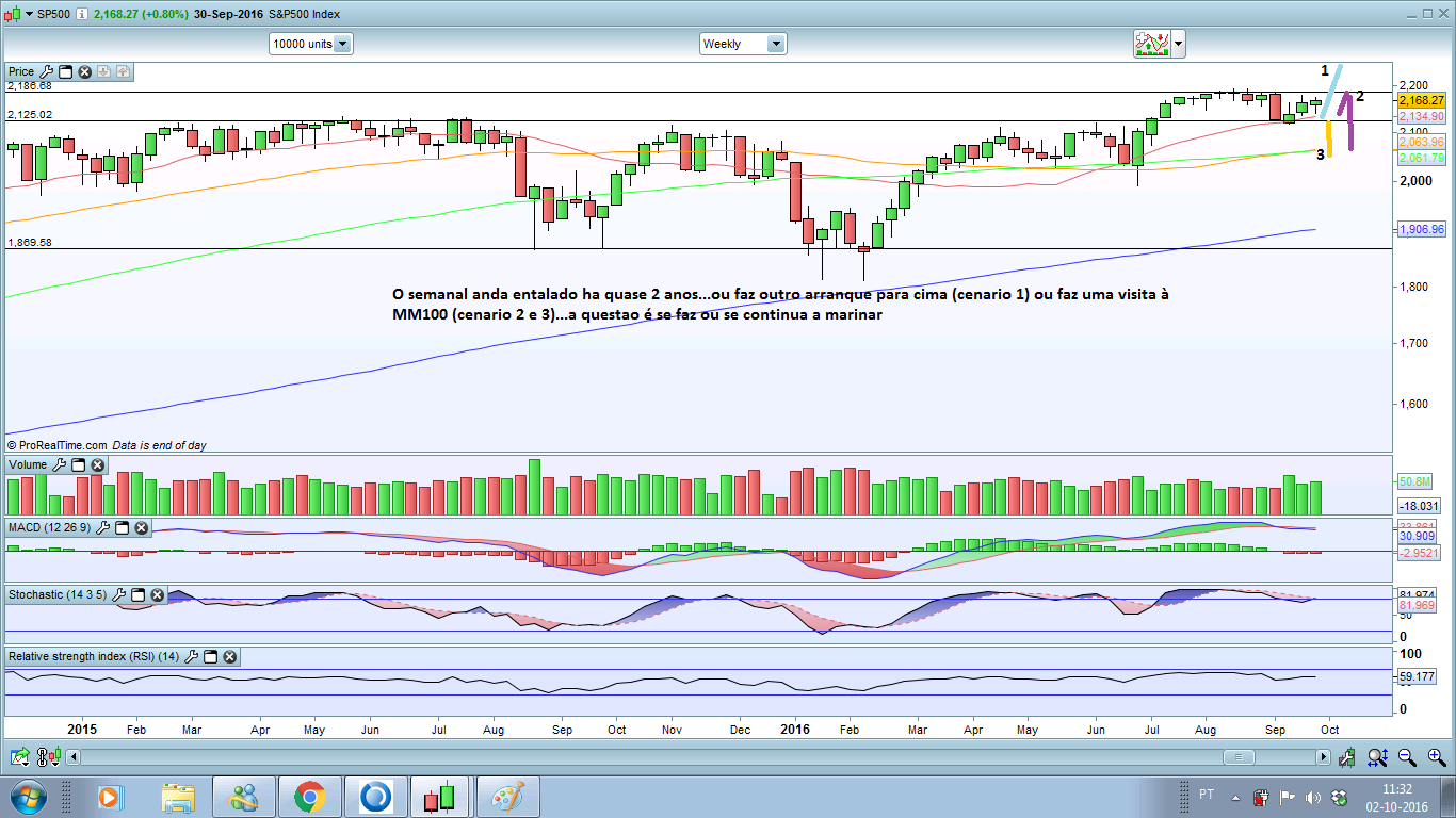 sigo alguns indices importantes para os meus trades em xau e xag. e o sp500 é um deles. assim, vamos ter o lançamento do indicador NFP dos USSA na sexta, que como de costume é um circo se a previsão não bater com o valor lançado. por outro lado, com a eleição do presidente, não se mexe nos mercados, yellen hawkish em setembro, pois pois, qualquer choque/escândalo pode virar as sondagens para o lado do trump, e o mundo acabava etc & tal.