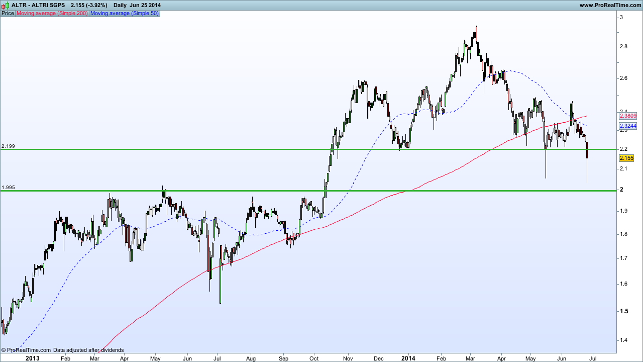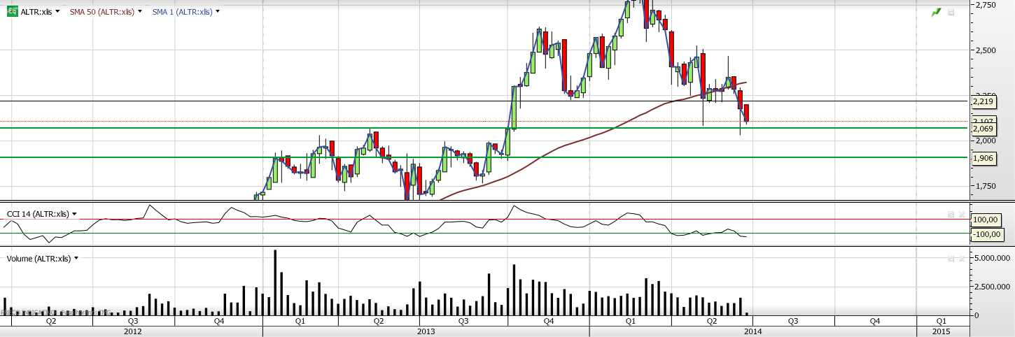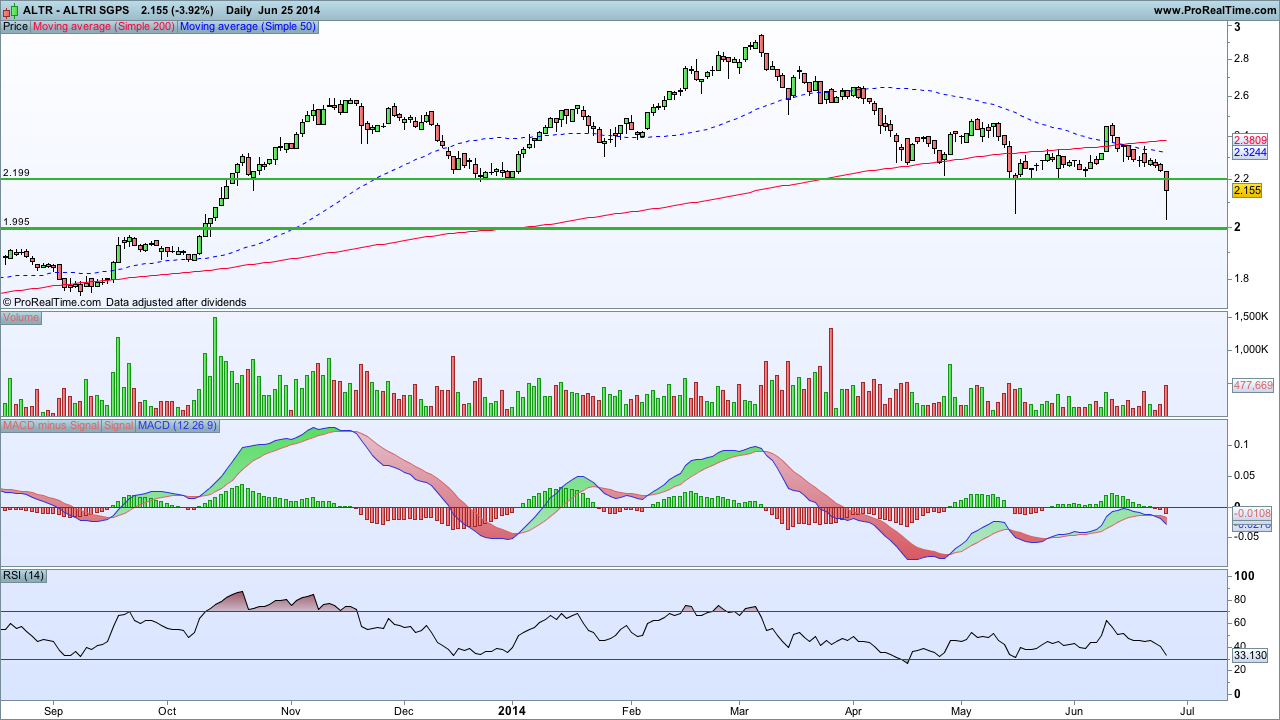 Após o dia de hoje, penso que podemos considerar quebrado em baixa o suporte dos 2,21€. A cotação associada ao volume levam-me a chegar a esta conclusão.
