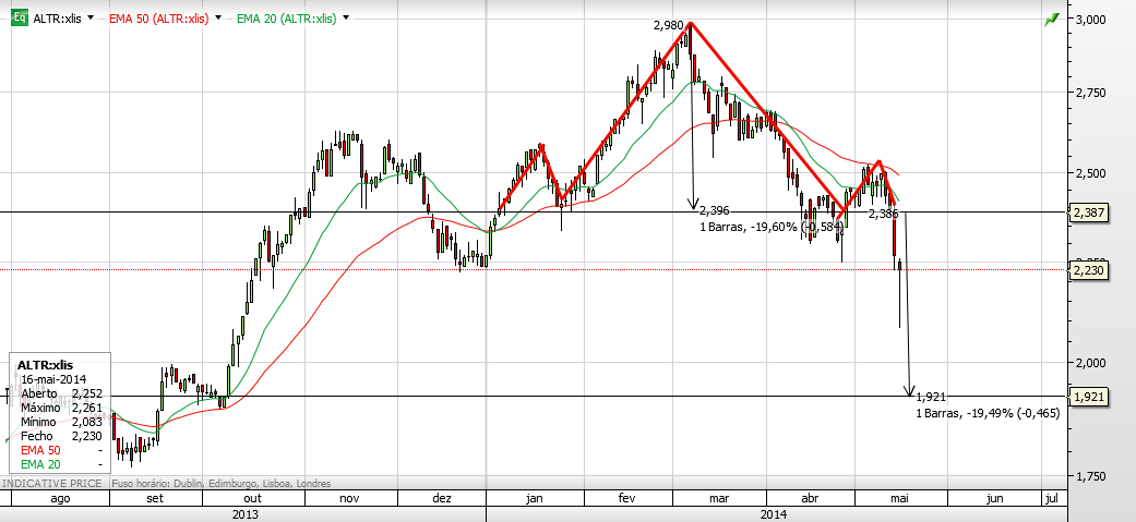 2- Para fazer abertura de posições longas escolher ações que estão a mostrar força nas ultimas semanas ou meses, e a Altri vem demonstrando fraqueza, por estes motivos na minha opinião dificilmente este trade vai terminar bem