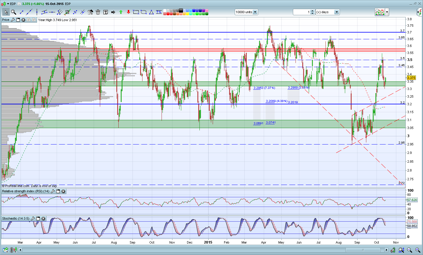 A edp tem sido uma ação difícil de prever. Poderá estar em tendência lateral neste momento depois de ter passado por um período conturbado que pode ter fornecido bons pontos para entrada longa. Eu também tenho posição na edp para manter na expetativa de dividendos generosos. O potencial para subir penso estar quase esgotado face às importantes resistências que tem pela frente. Potencial de ganho de 11% até ao máximo. :-k