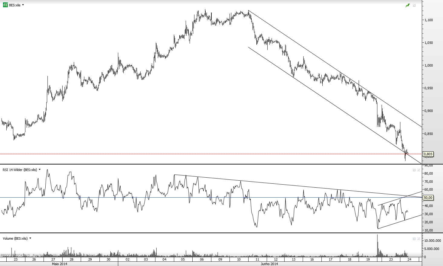 Suporte definitivamente quebrado só no fecho. Dei nova ordem de compra a 0,725 (anulei a anterior senão já estava dentro) mas de uma quantidade pequena. Para além dos problemas do BES o PSI está a acompanhar a por ora ligeira correcção do dax e a acção pode muito bem vir abaixo daquele valor. Vamos acompanhando. Este papel pode queimar...