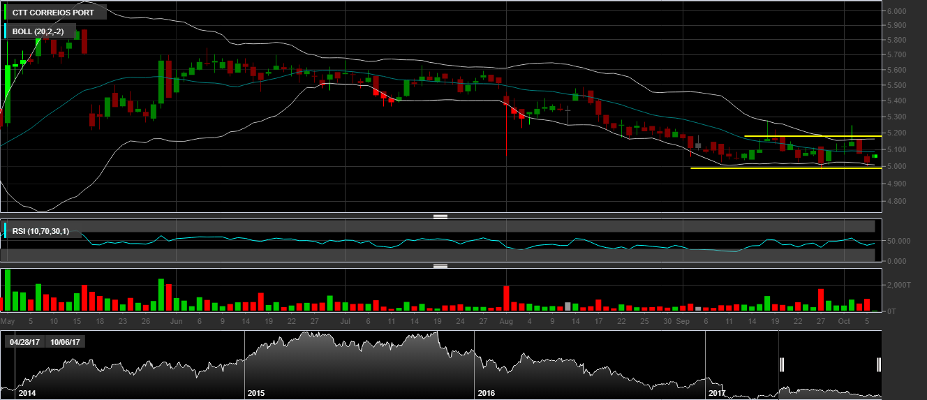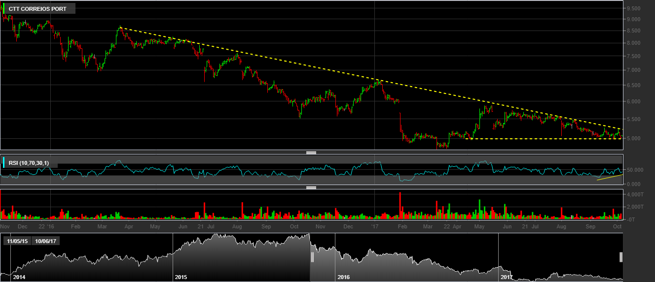 Seria interessante os CTT começarem a reagir amanhã com convicção, se não uma ida ao mínimo começa a ser cada vez mais uma realidade.