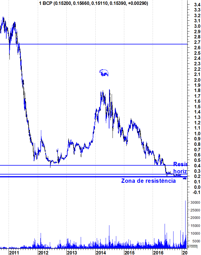 "Neste momento a ação (está nos 0,9 antes de AC) tem muito espaço para recuperar, mesmo sem inversão de tendencia, até aos 0,19 (1,10 antes de AC)"