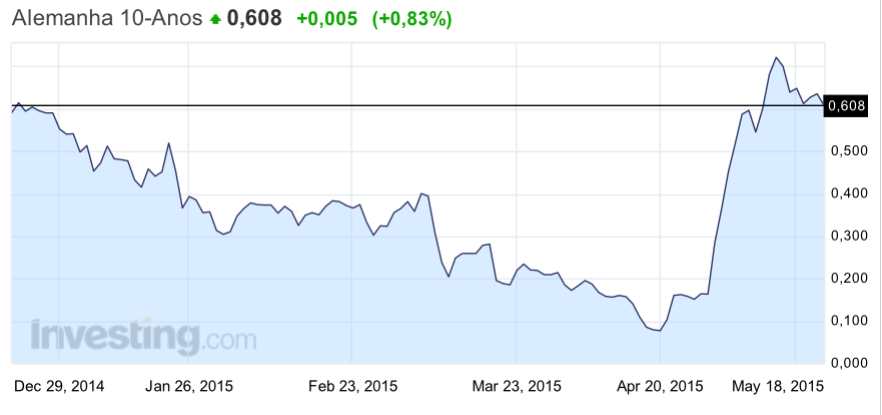 O juro das obrigações a 10 anos teima em ficar lá em cima, a 5 anos já é, de novo, positivo e a 1 ano continua a subir. Se mantiver este rumo, o Euro tenderá a valorizar e o DAX a sofrer. Pelo contrário, se recuperar a anterior tendência descendente será positivo para as posições longas em acções alemãs.