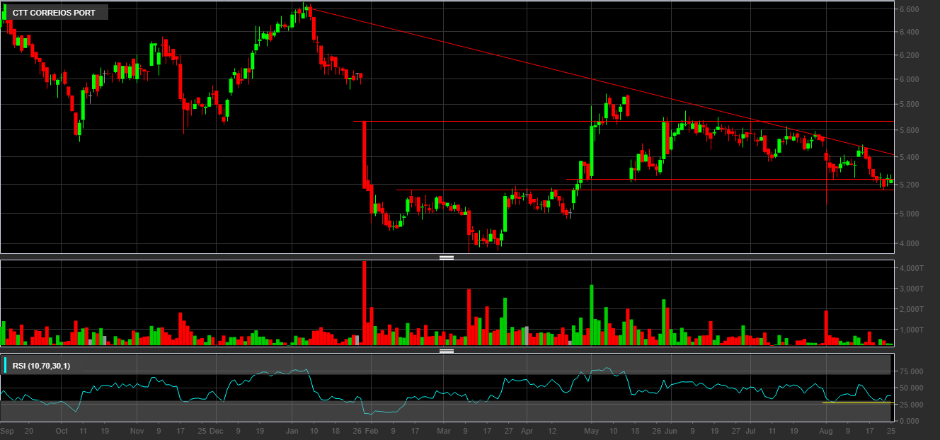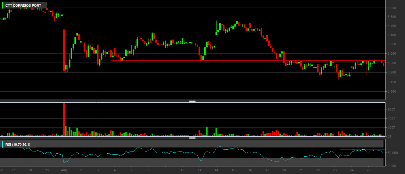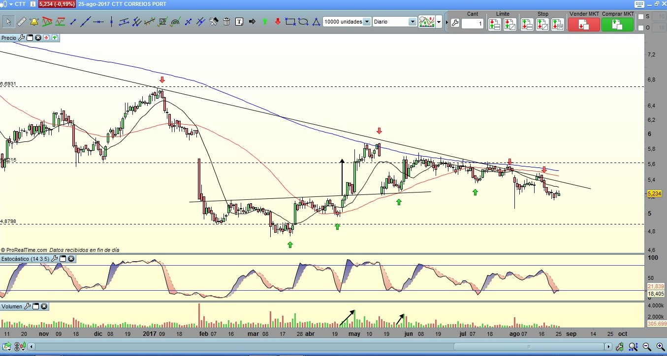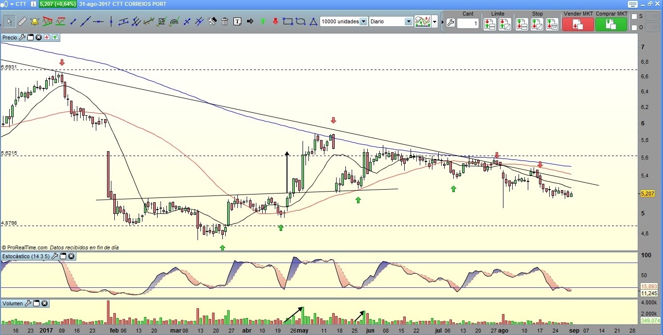 Na minha opinião esta tratou-se de uma pequena recuperação dos CTT, face á queda ontem mais expressiva e aproximação á zona psicológica de compra 5.00-5.05.