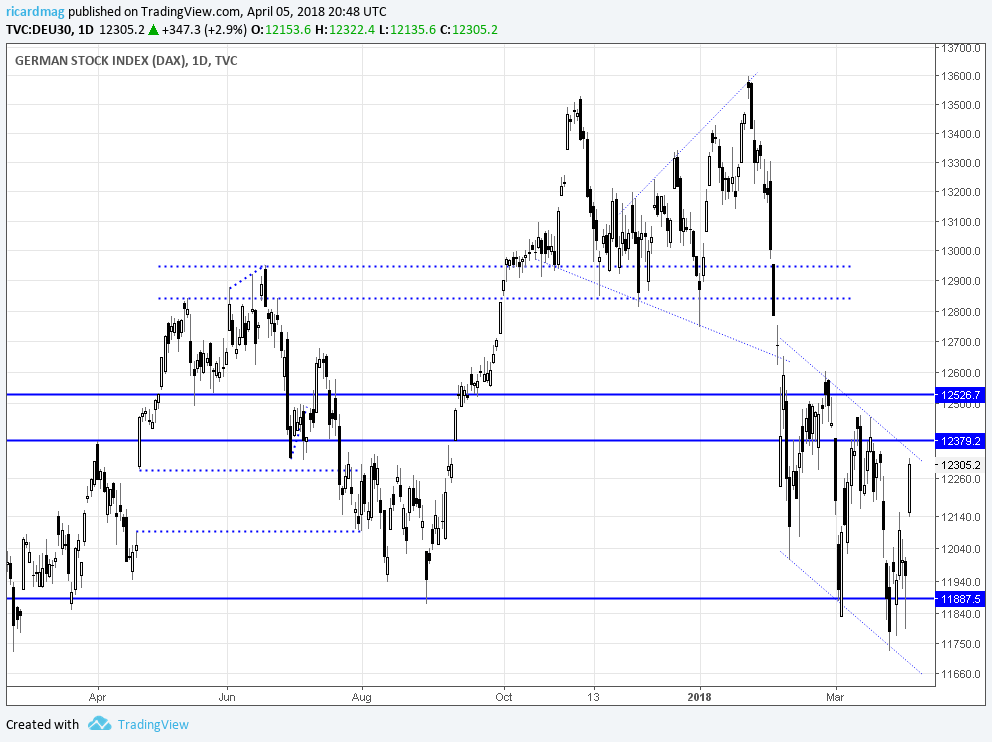 Neste momento o DAX continua bear a curto prazo só um fecho acima de 12370 se pode considerar posições longas.