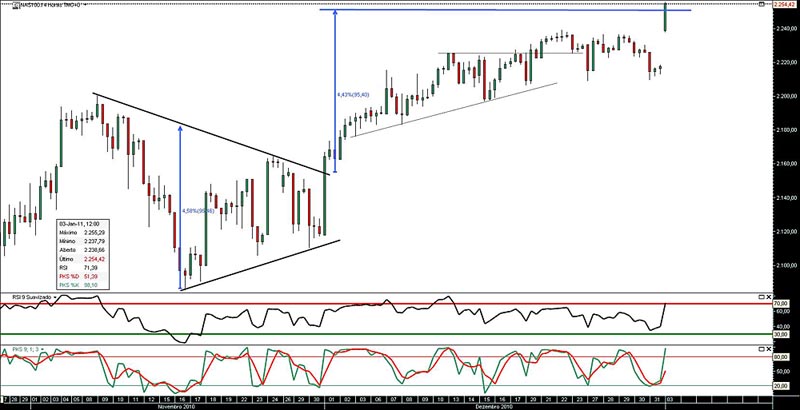 A projecção do triângulo simétrico formado durante Novembro ainda não foi atingida. Faltam 30 pontos para os 2150 pontos que curiosamente é um valor próximo dos já referidos máximos de 2007.