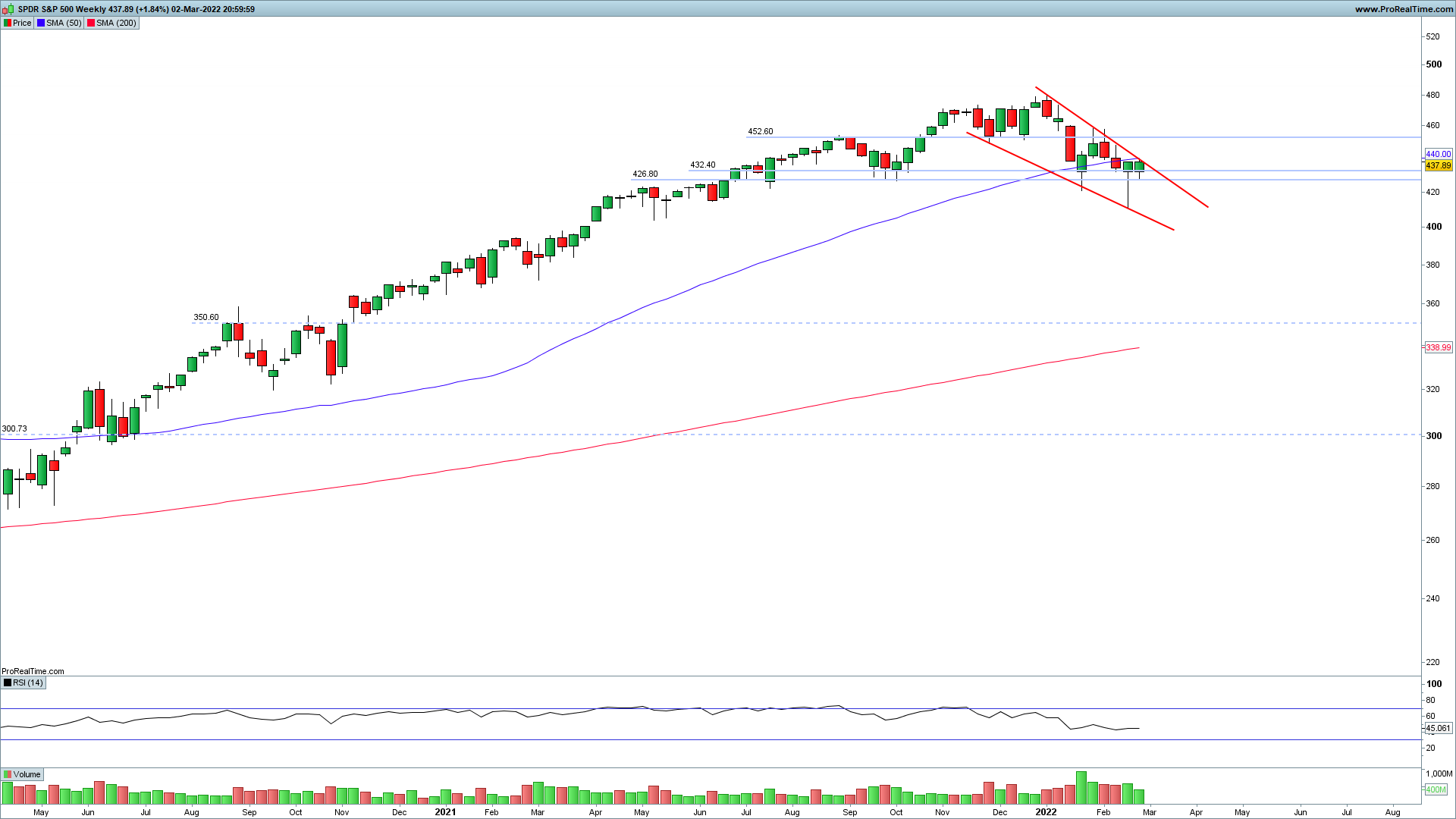 aquele que me parece ser o cenário tecnicamente mais provável para o futuro do spx será um novo teste á zona de suporte em torno dos 4250 pts nas próximas sessões, para o índice acabar de descontar o acontecimento "guerra ucrânia-rússia" e depois infletir o sentido e começar a construir uma nova up leg, deixando no seu gráfico diário bullish divergences com o RSI e com a MACD, que me parecem estar em preparação, mesmo que a ameaça de guerra se venha a concretizar.