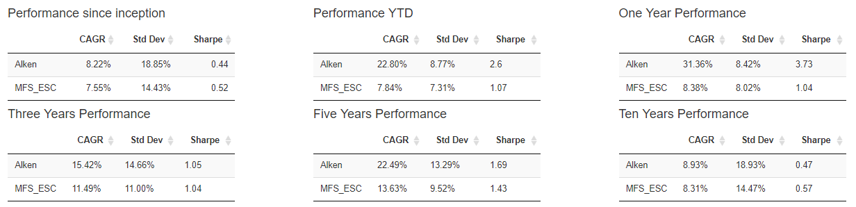 Uma carteira 50/50 Alken/MFS bate o MSCI ESC por larga margem: