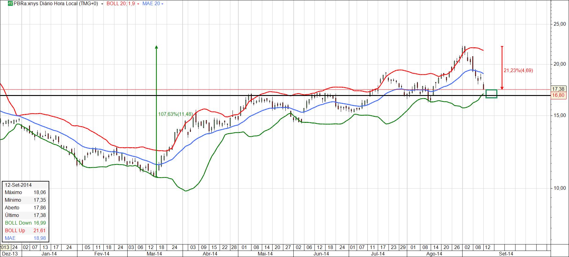 Esperava sim alguma correção do IBOVESPA e a PBR tem um peso alto no índice, mas não esperava essa brutalidade de 22%, que me parece ainda deverá vir um pouquinho mais prá trás + ou menos - 3% visto em conta o valor de 16.80 USD para uma nova entrada que apesar de tudo, sexta-feira...fiz nova entrada aos 17.20 USD com 5k e não obedeci o alvo estimado dos 16.80. Portanto poderei iniciar isso aqui já com -3%. Vamos a ver o que nos reserva a próxima semana.