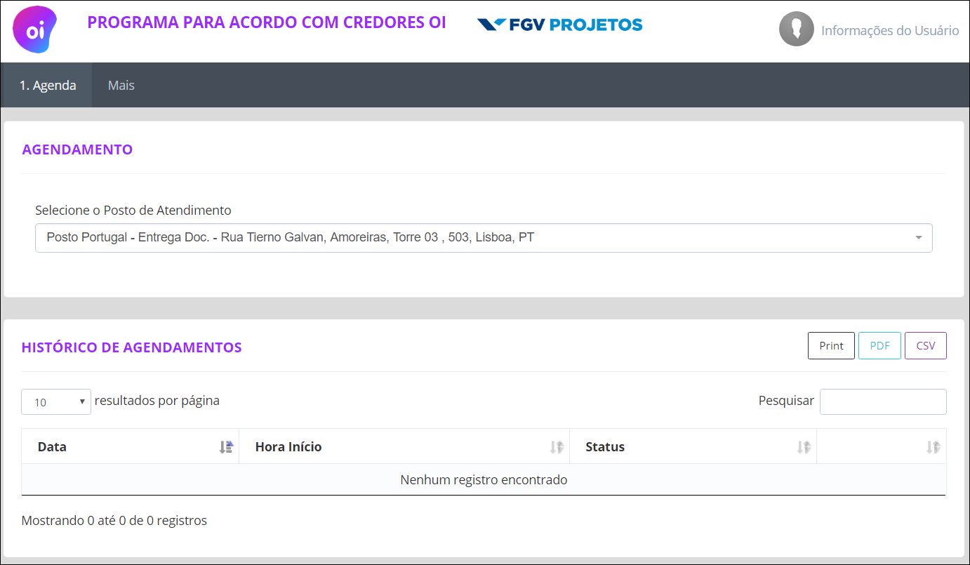 Em virtude do adiamento da Assembleia Geral de Credores para o dia 10 de novembro de 2017, informamos que o Programa para Acordo com Credores em Portugal estará disponível, para aqueles que já haviam se cadastrado na plataforma e desde que a documentação requerida seja devidamente validada, até o dia 07 de novembro de 2017, devendo o agendamento ser feito via plataforma http://www.credor.oi.com.br.