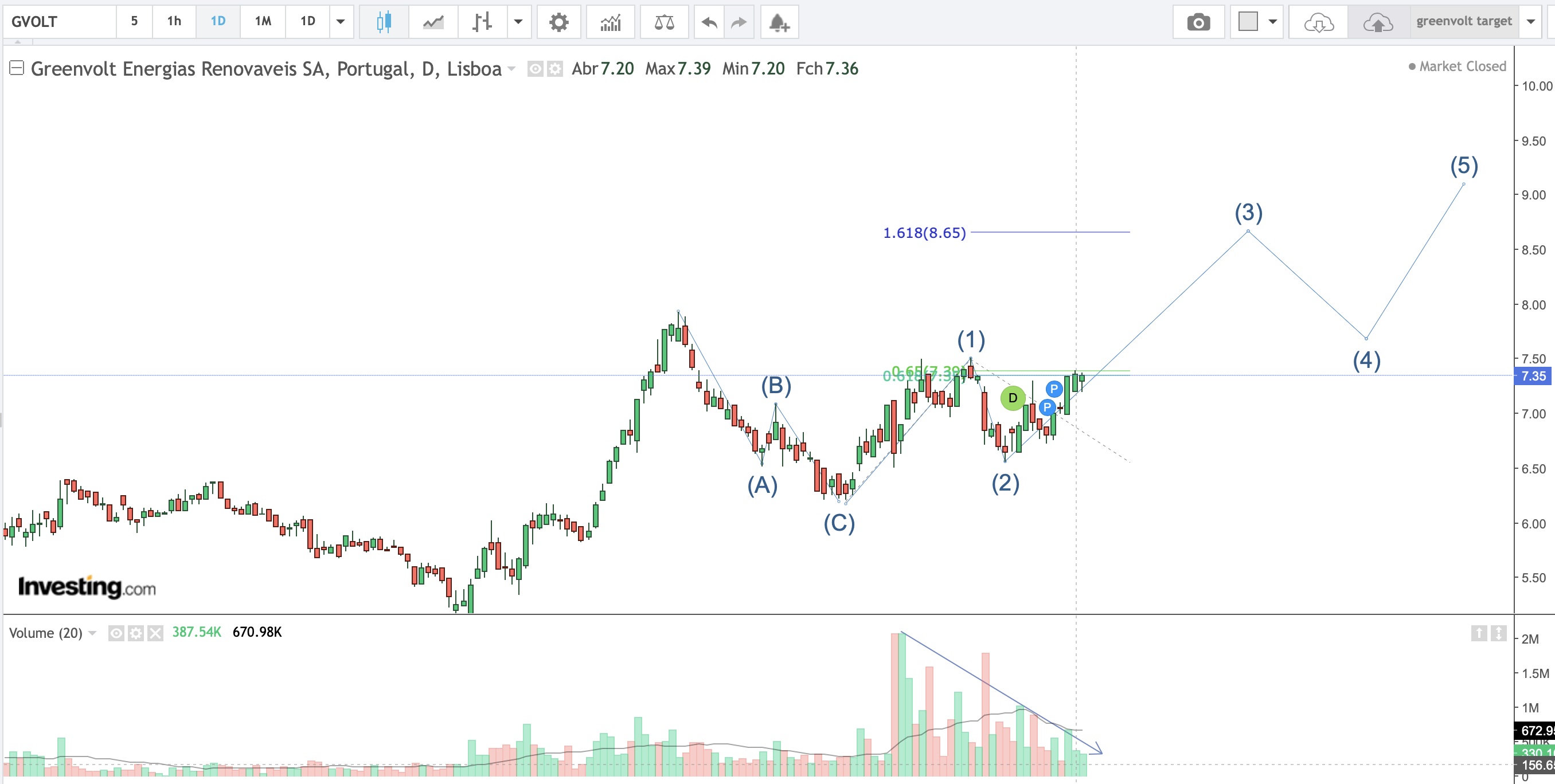 target 8,65 nas próximas semanas...a extensão fibo 1.618 é o íman...estamos no inicio da onda 3 ...a mais explosiva de todas