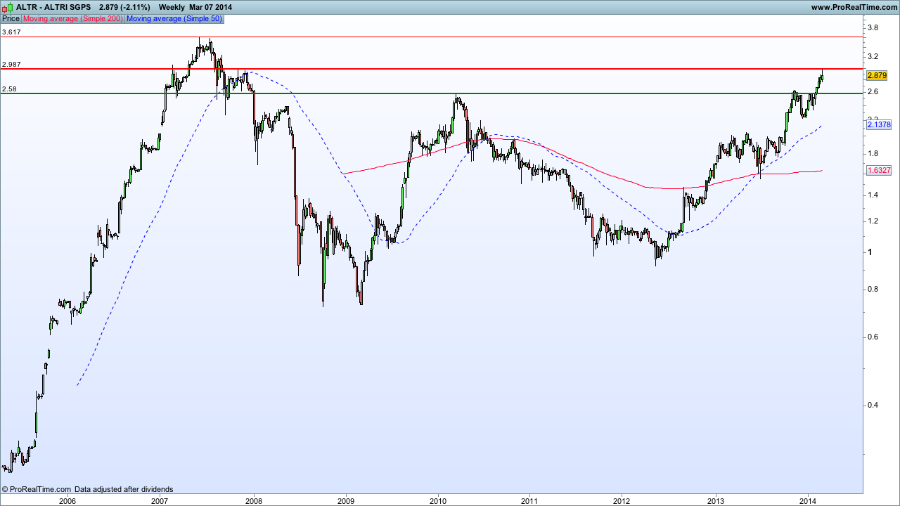 A resistência parece-me fácil de identificar, sendo que na quebra dos 2,98€ de hoje apenas temos a referência dos máximos de sempre nos 3,61€.