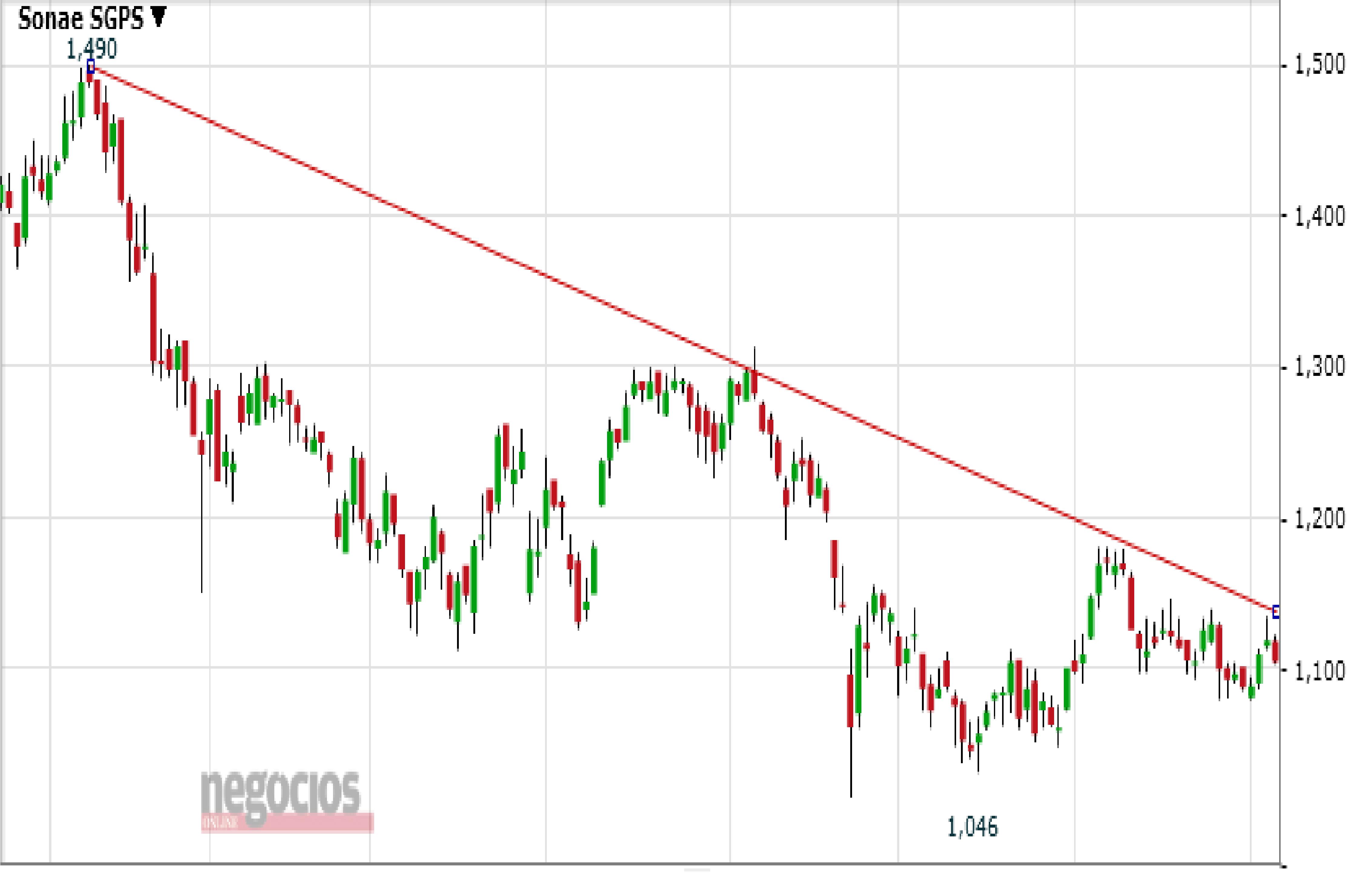 Sempre que a Sonae vai à linha de tendência é recambiada para baixo. Foi o que aconteceu 4ª (tocou a linha de tendência descendente que vem desde Abril) e 5ª.