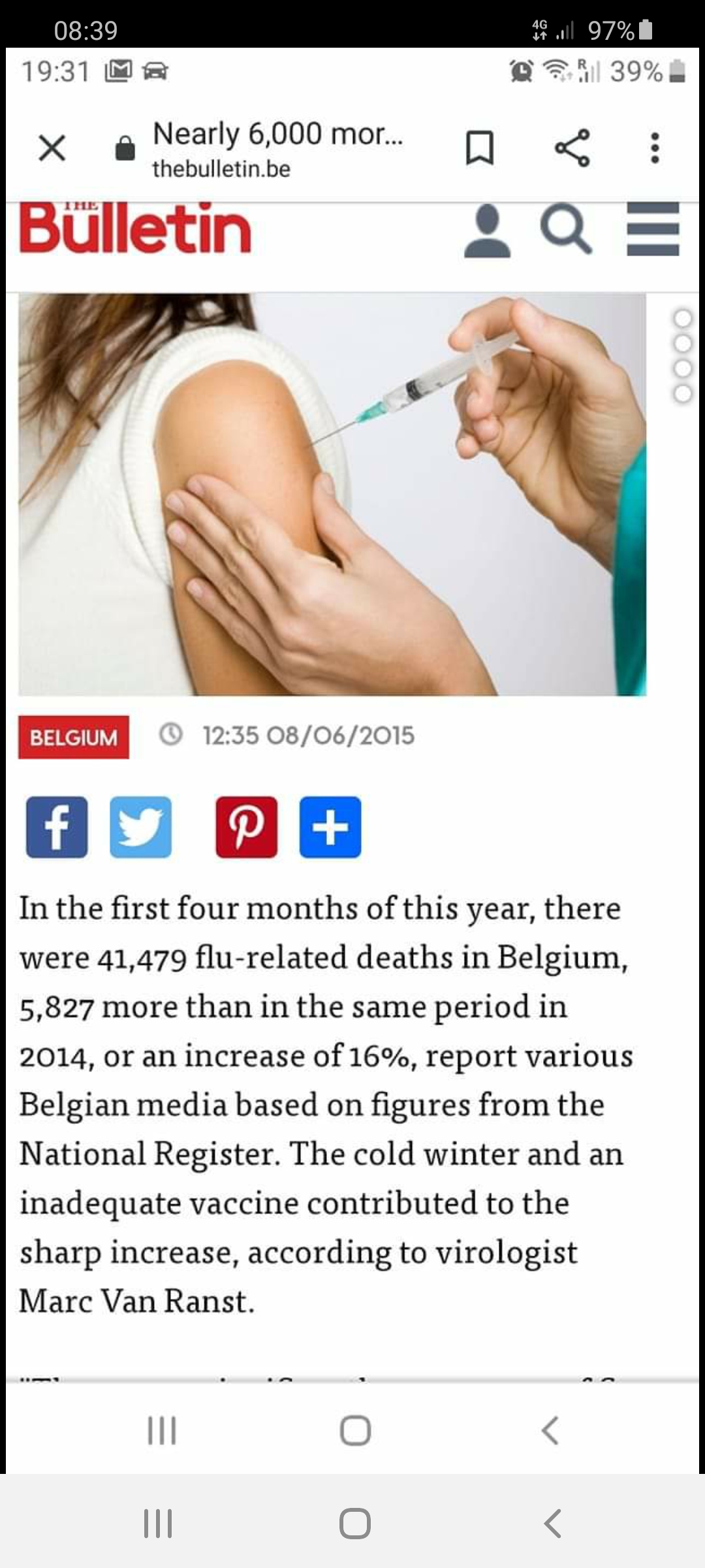Basta ler os comentarios a pedirem ao bulletin para fazerem a tradução correcta de Flamish para Ingles. A verdadeira noticia em flamengo fala que houev 42k mortes nos primeiros 4 meses do ano (todas as causas), um incremento de de quase 6k pessoas em relacao ao anterior.