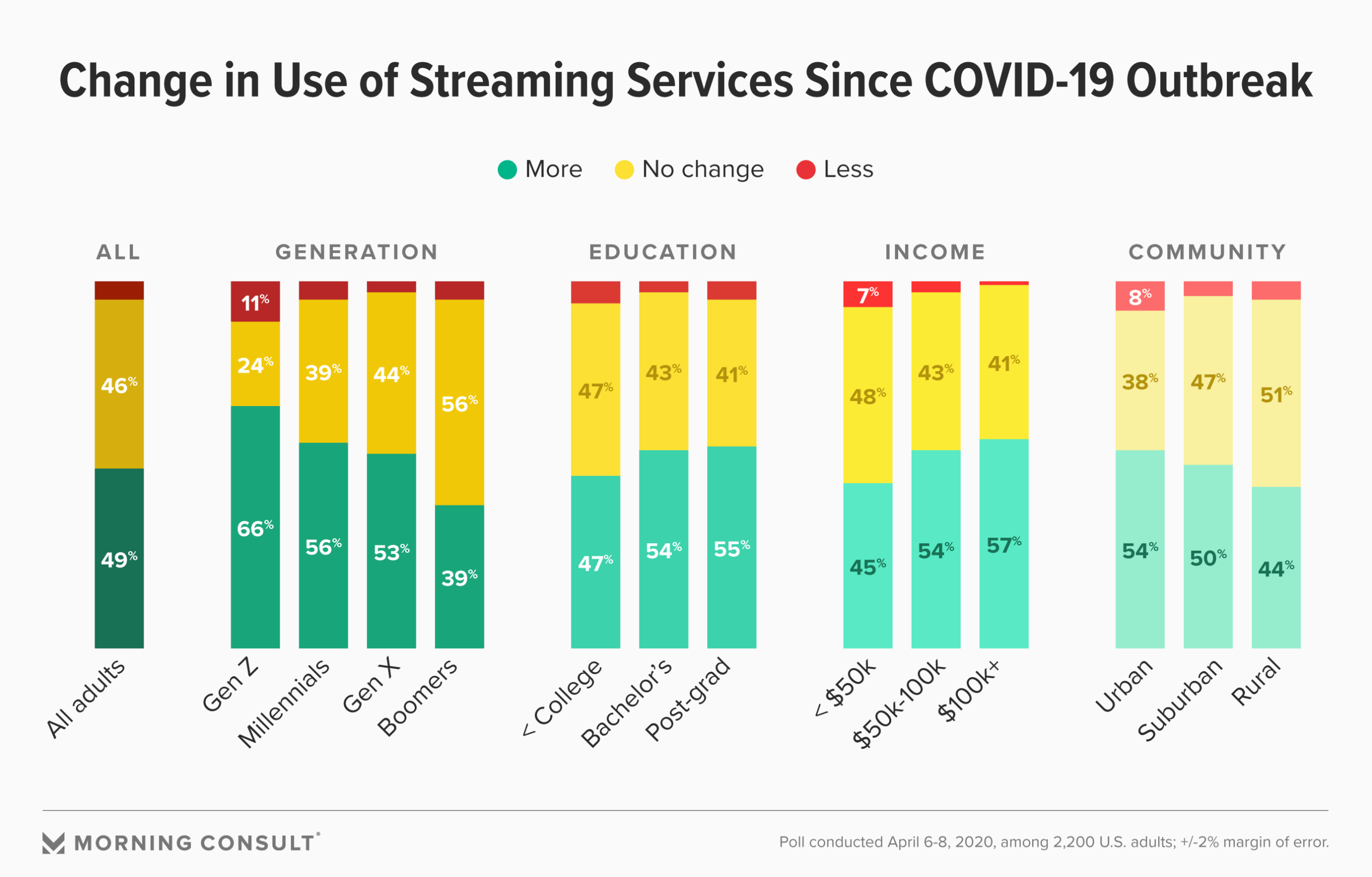 Queria abordar o streaming de conteúdos em 5G, de marcas Mundiais, como fonte de crescimento exponencial, durante e depois da pandemia (dos atuais 550 milhões de subscritores para futuros 3 biliões de subscritores, considerando uma média de 2,2 subscrições por consumidor - serão cerca de 1.6 biliões de consumidores em 2025, dos atuais 260 milhões). Como game changer para o Grupo Impresa (OPTO, focada em conteúdos em português) e Disney Group (Disney+), mas também para as outras majours do streaming Mundial (da Hulu à Comcast, da Netflix e Amazon Prime ao Facebook, do At&T/HBO ao Tencent), mas escreverei noutra altura (*em baixo anexo primeiros dados sobre o crescendo multigeracional do streaming por SVOD – subscription video on demand) .