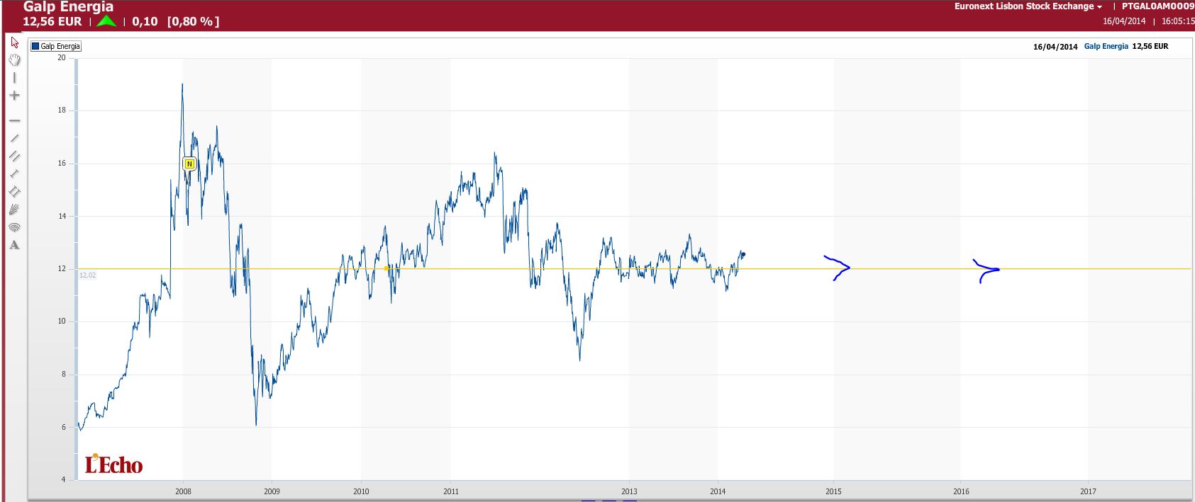 A Galp anda a lateralizar entre ~[11-13] há mais de um ano e meio.