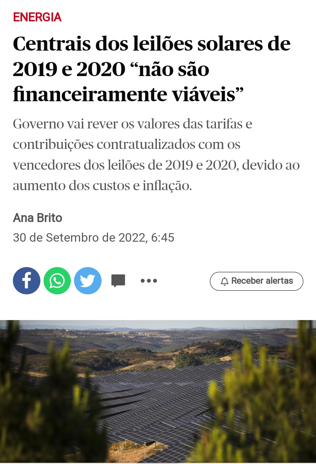 Mas então a energia infinita e verde do sol agora está sujeita a inflação?