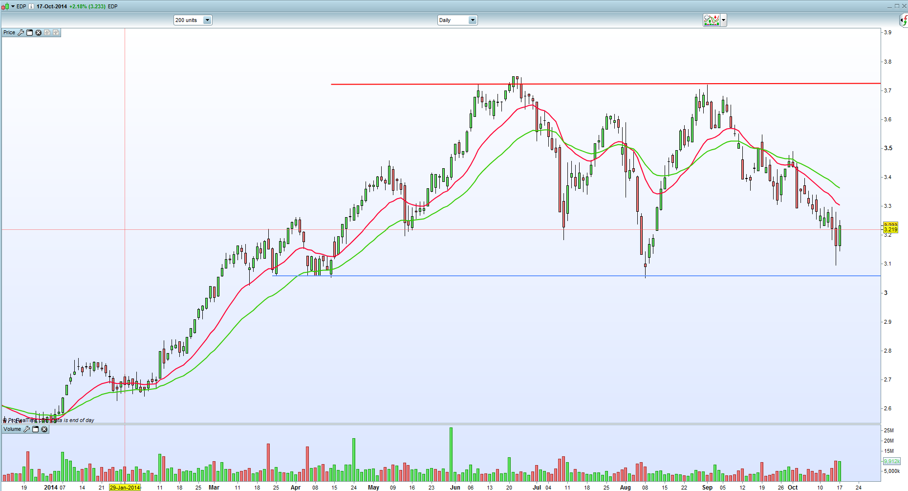 Os últimos meses não têm sido os mais felizes para a cotação da EDP. O escândalo GES abalou (ou deverei dizer “abanou”?) a confiança na Bolsa portuguesa e mesmo as empresas com menores ligação ao Grupo acabaram por ser penalizadas numa reacção simpática aos outros títulos e às quedas das principais Bolsas mundiais.